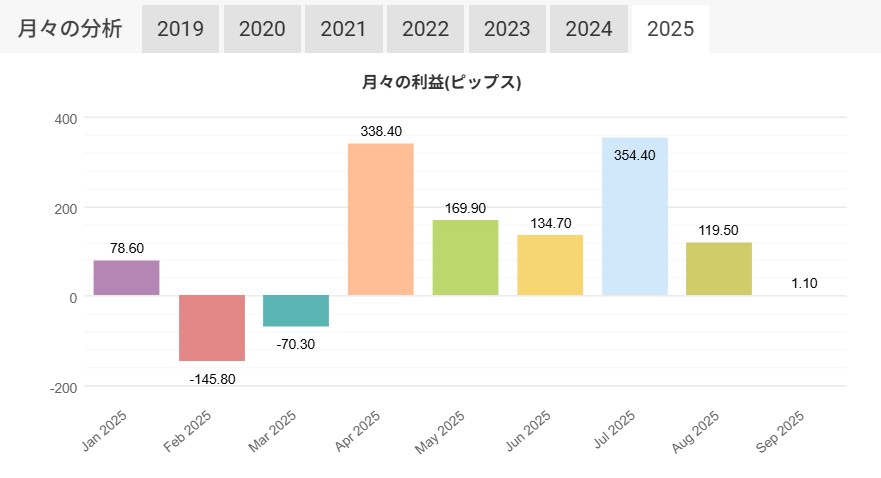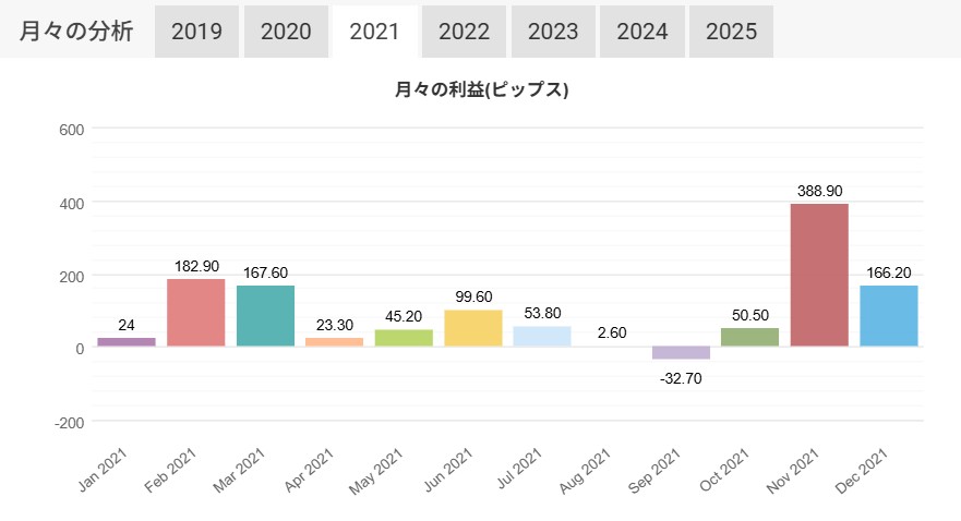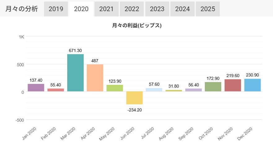 今年に入ってからも4月以降は月次で5連勝中で、獲得pipsは980.5pipsとなっています。