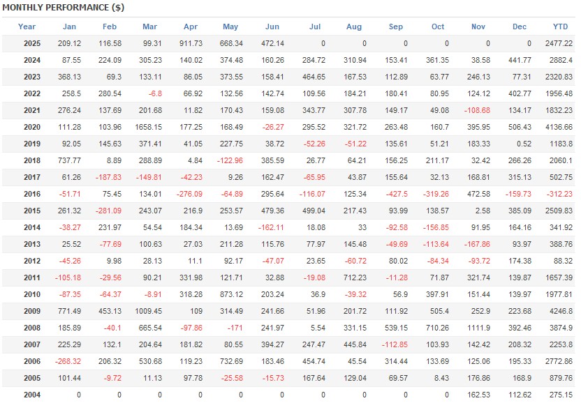 PF1.87、RF41.49とかなり良好な成績かと思います。直近3年ぐらいは負けた月自体も少なく特に好調になっています。