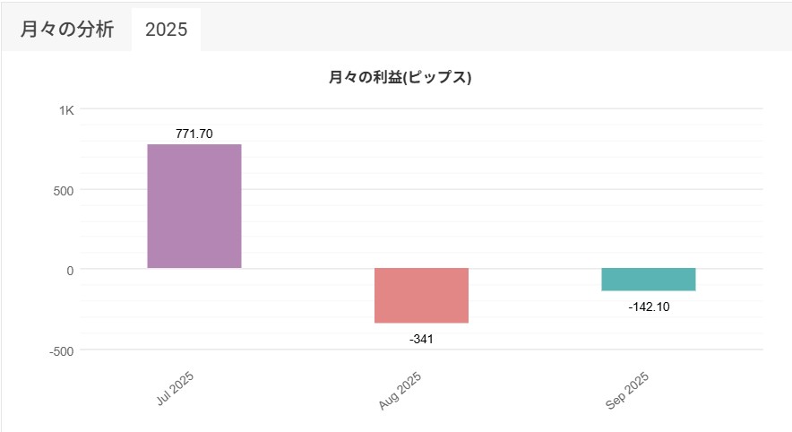 9月の裁量トレードの成績は-142.1pipsで、8月に続いてマイナスとなってしまいました。