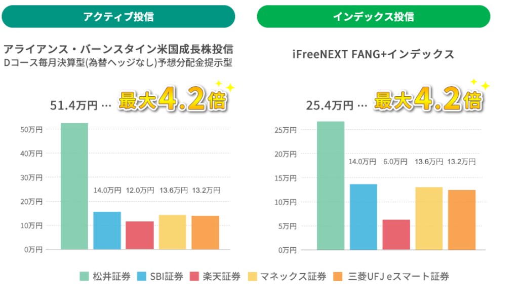 これは銘柄にもよるかと思いますが、例えば下記の銘柄では他社比較で最大4.2倍の還元額になっています。