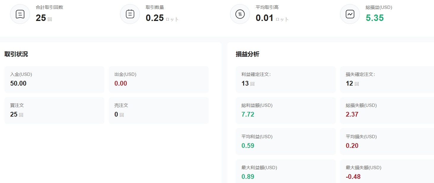 まだEBCの口座で稼働をスタートさせて間もないですが、現状こんな感じで推移中です。