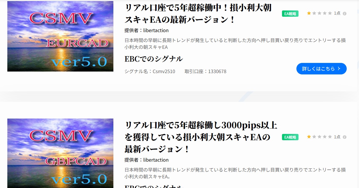 先ほども書きましたが、「EBC EAナビ」はこのコピートレードで提供されているシグナルのうち、「実ユーザーの評価」を得ている一部のEAを中心としたシグナルを集めて掲載したページとなっています。