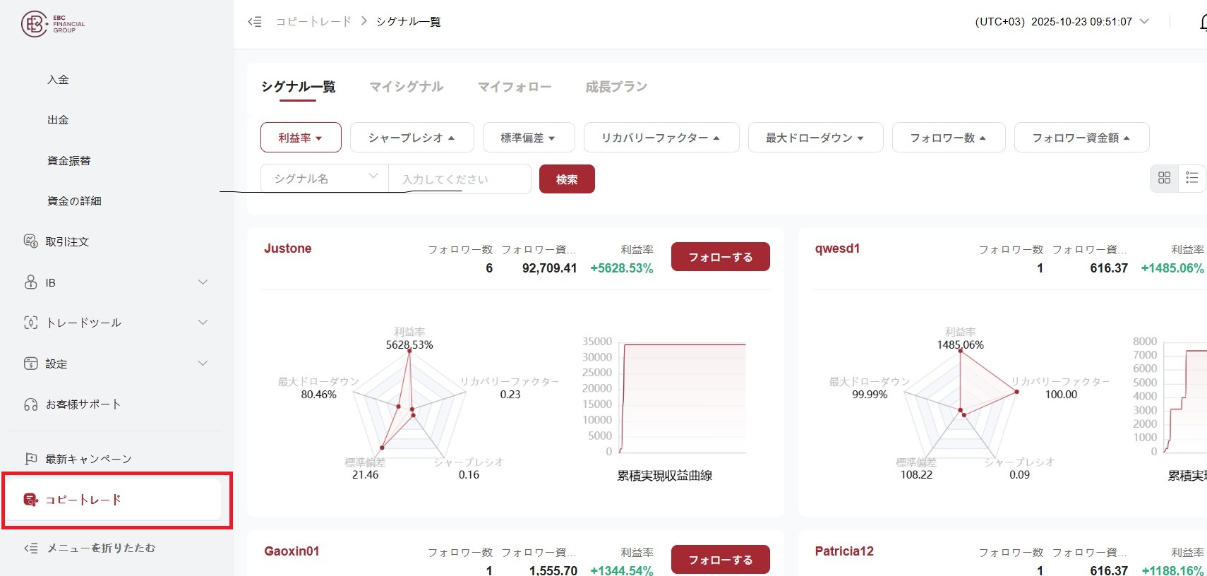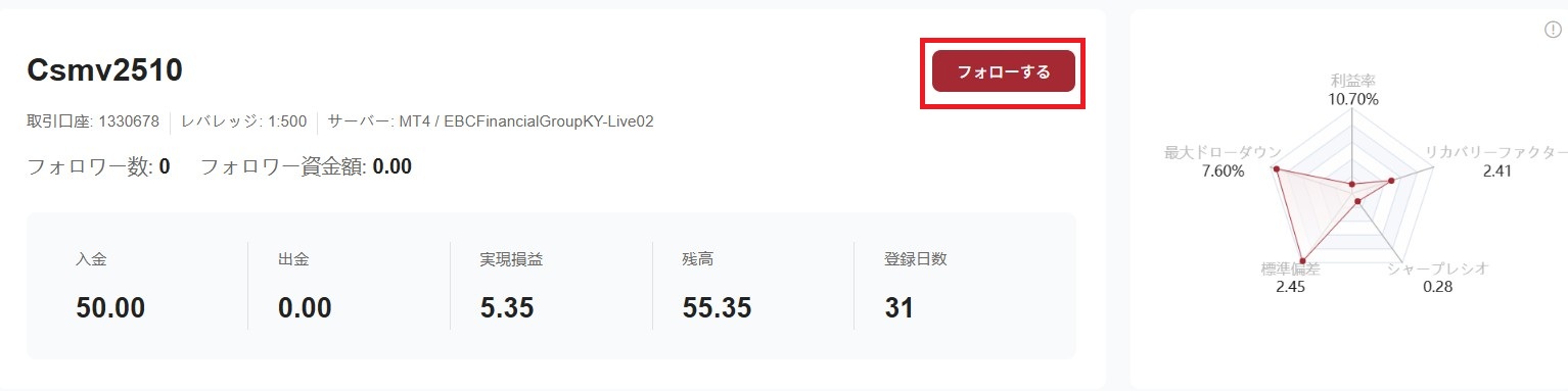 ・EBCの管理画面でシグナルの選択、フォローが可能(※MT4/MT5上での操作は不要、VPSも必要なし)
