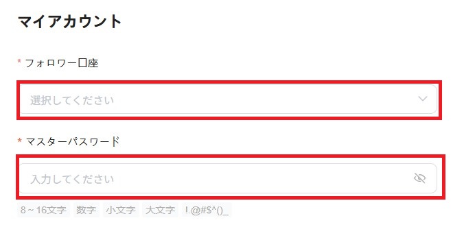 ④「マイアカウント」にシグナルを受信したい自分の口座番号とマスターパスワードを入力してください。