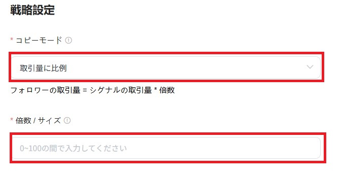 フォロワーの取引量 = シグナルの取引量 * 倍数