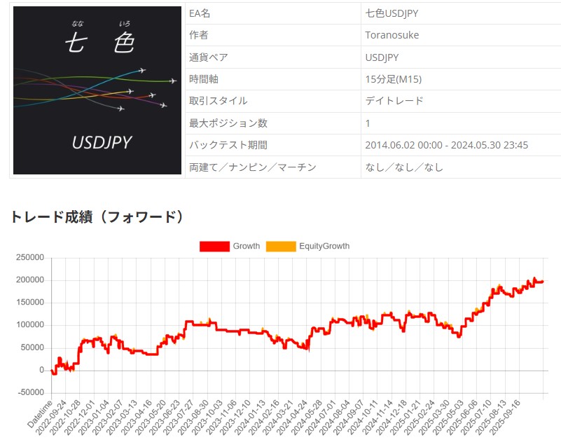まずドル円の方が、七色USDJPY(EA-BANK版)。
