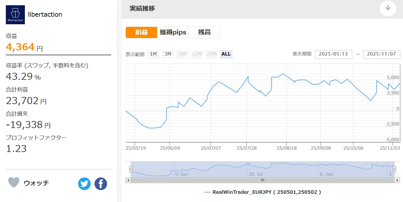 もう一つは自作EAのRealWinTrader_EURJPY。