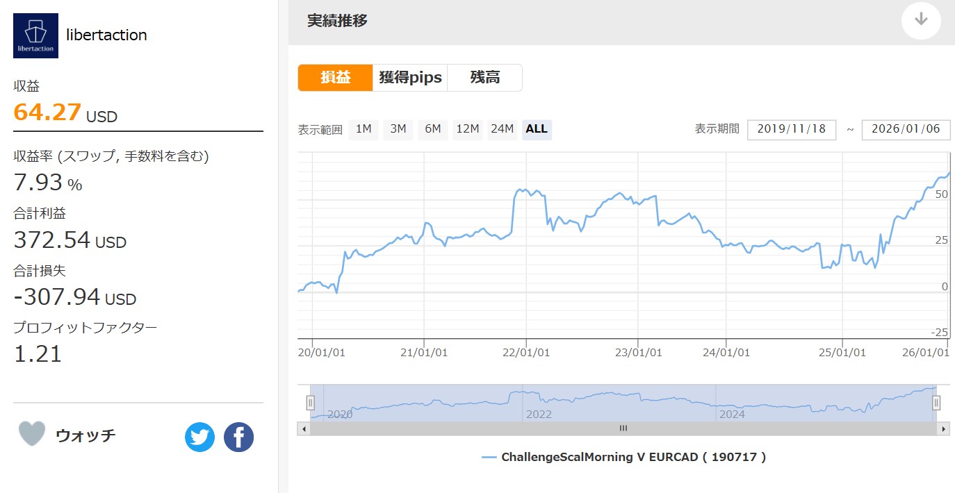 昨年3月からpipsベースで毎月プラス(利益ベースでは12月微損)を継続中の朝スキャEA・ChallengeScalMorning V EURCADの勢いが止まりません!
