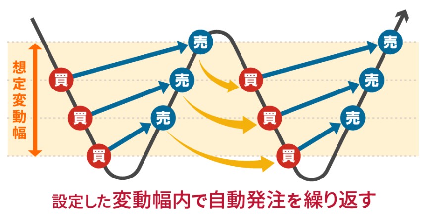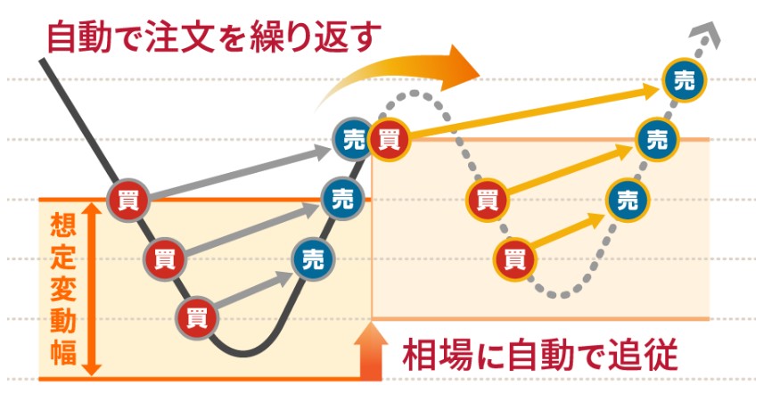 一定のルールに基づいて注文と決済を繰り返す仕組みとなっており、相場の変動を利用した取引が可能です。