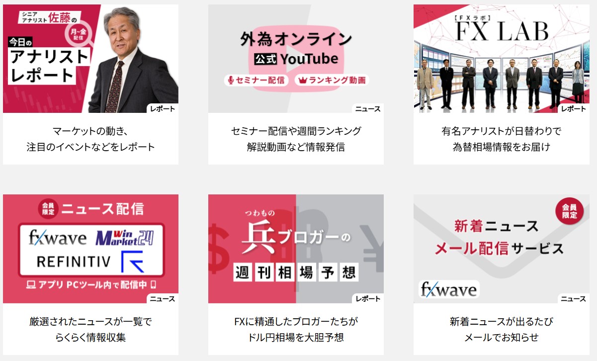 外為オンラインの口座開設後は、FX取引に役立つ豊富な情報コンテンツにアクセス可能です。