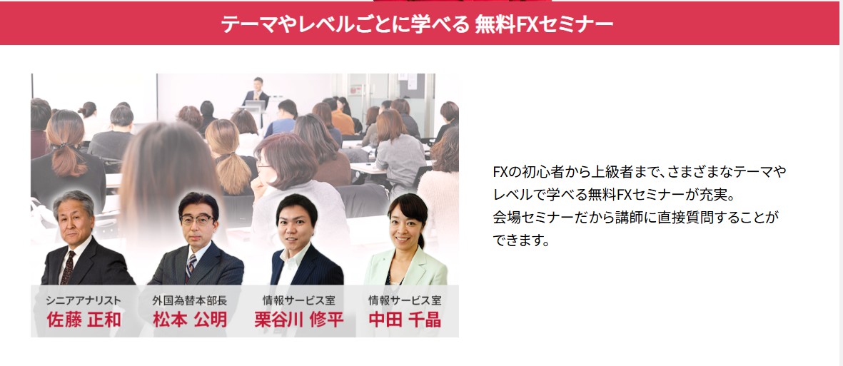 外為オンラインでは、口座開設者や利用者を対象にした無料のFXセミナーが充実しています。