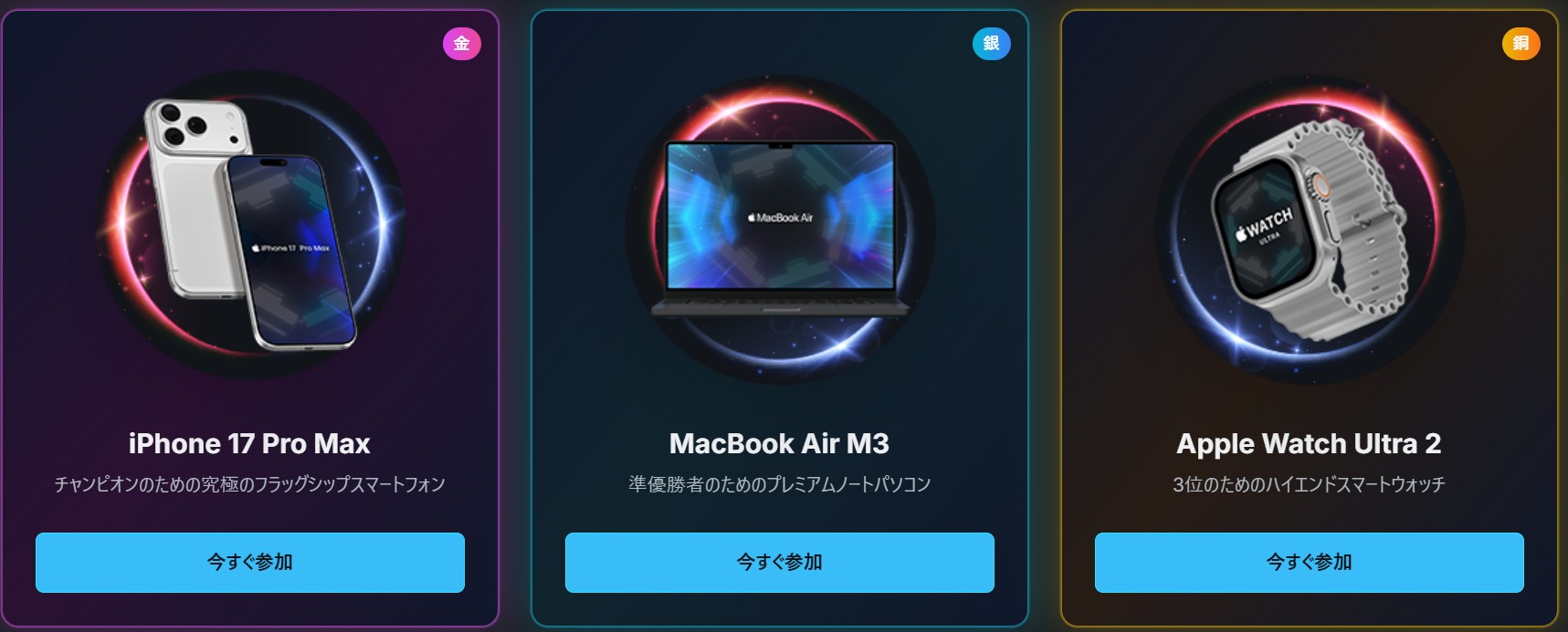 ※順位付け は デモ口座のリターン率(%)で行われ、最も高い成績を出した人が勝者となります。損失のみの場合は賞品対象外です。