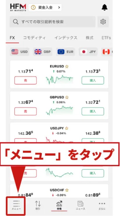 ※現在「HFコピー」ではなく「コピー取引」という表示になっています。