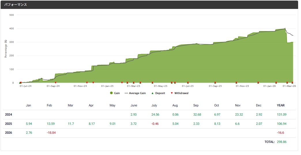 私自身EA開発や自動売買運用を行っていますが、優秀なEAを選ぶ際にポイントとしているのは、リスクをできるだけ長期間抑え込みながら着実に利益を重ねていけるかどうかといった点です。