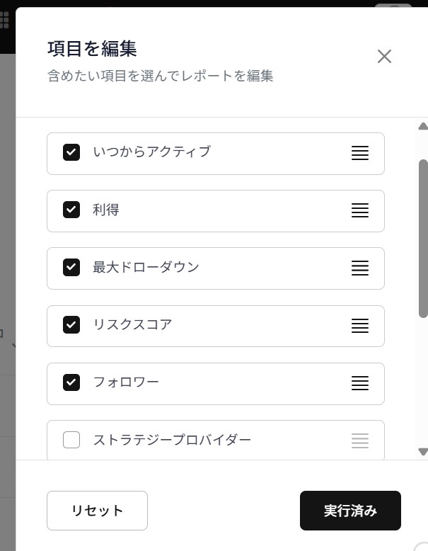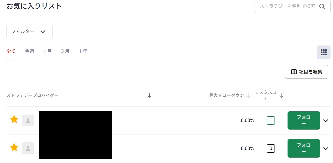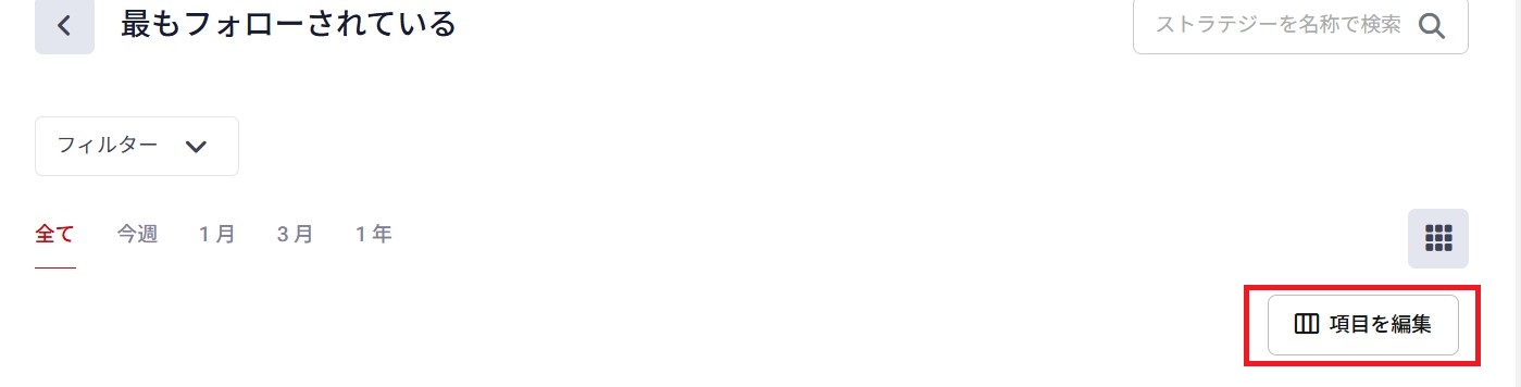 このようにフィルターと「項目編集」を併せて絞り込むことで、膨大なストラテジーの中から気に入ったストラテジーが見つけやすくなるはずです。