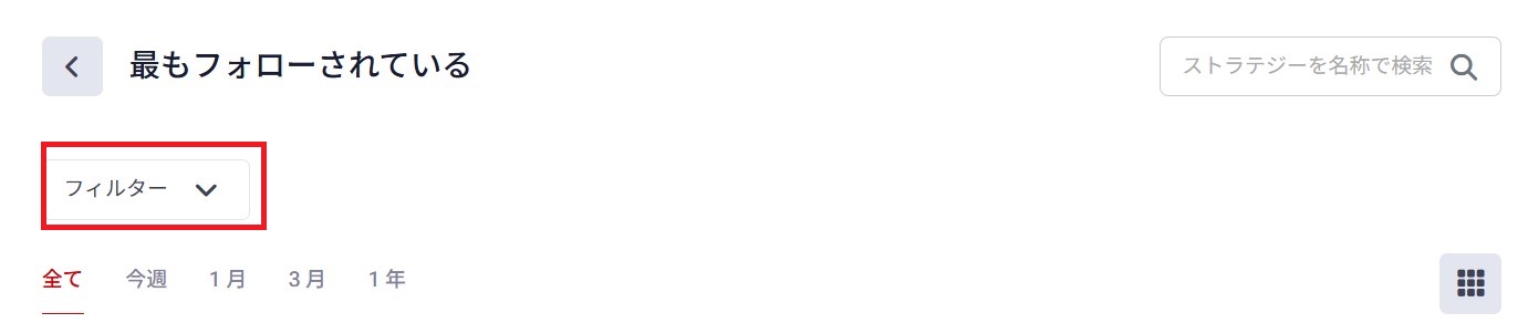 ストラテジーを絞り込むもう一つの方法は「フィルター」を活用して検索する方法です。
