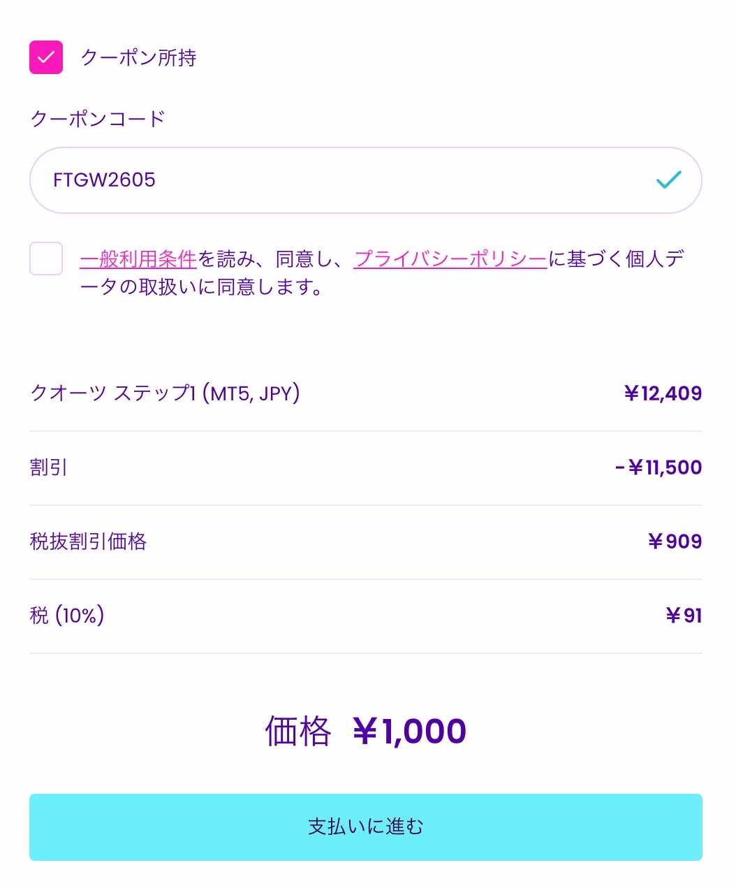 通常価格でも比較的参加しやすい水準ですが、今回さらに割引が適用できるクーポンが用意されています。