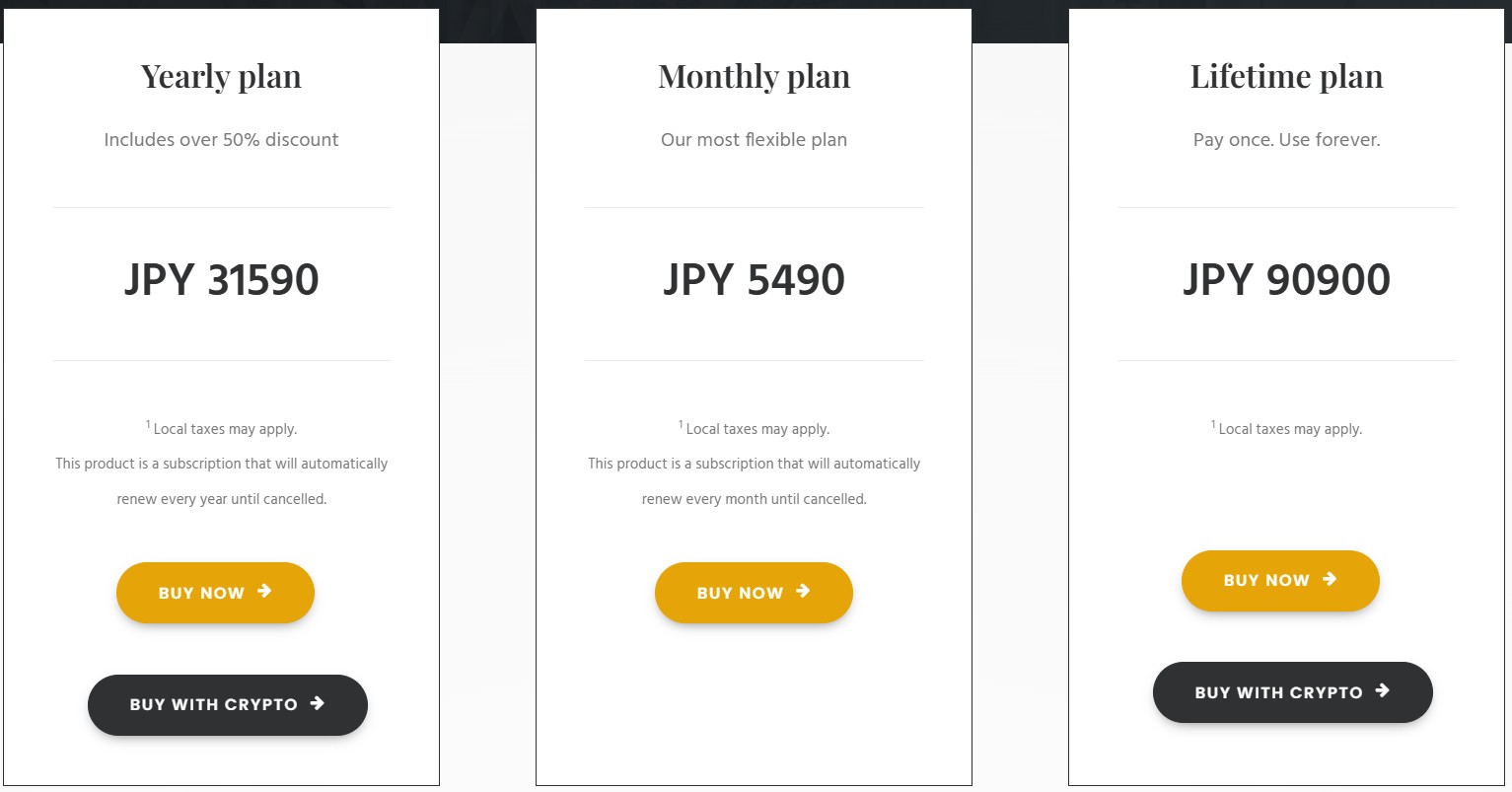 TDSの利用プランとして、月額プラン(サブスク)、年間プラン(サブスク)、生涯プラン(買い切り)がありますが、料金は以下のように表示されています。