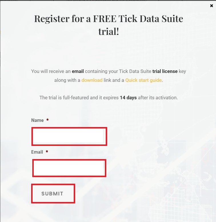 ②ポップアップで表示されたフォームから名前とメールアドレスを入力し「SUBMIT」をクリック。