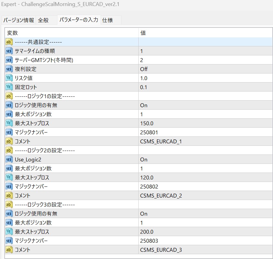 CSMSシリーズでは通貨ペアごとにロジックを最適化しており、本EAはEURCAD専用に調整されたトレードロジックを採用しています。